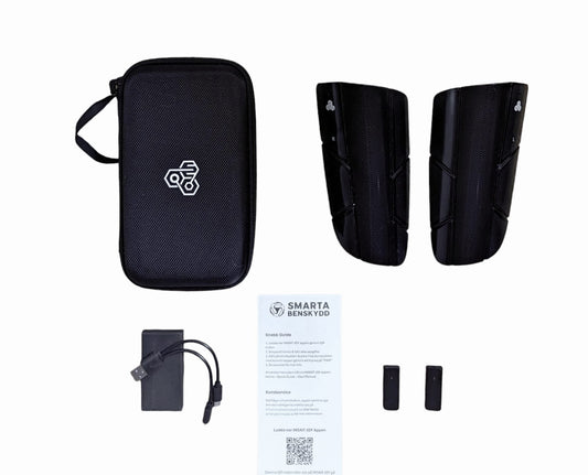 Slå bara på spelarens spårningsmoduler, sätt i benskydden och sätt på dem – som ett vanligt par benskydd. De skyddar dig från skador och stötar samtidigt som de mäter din prestation.