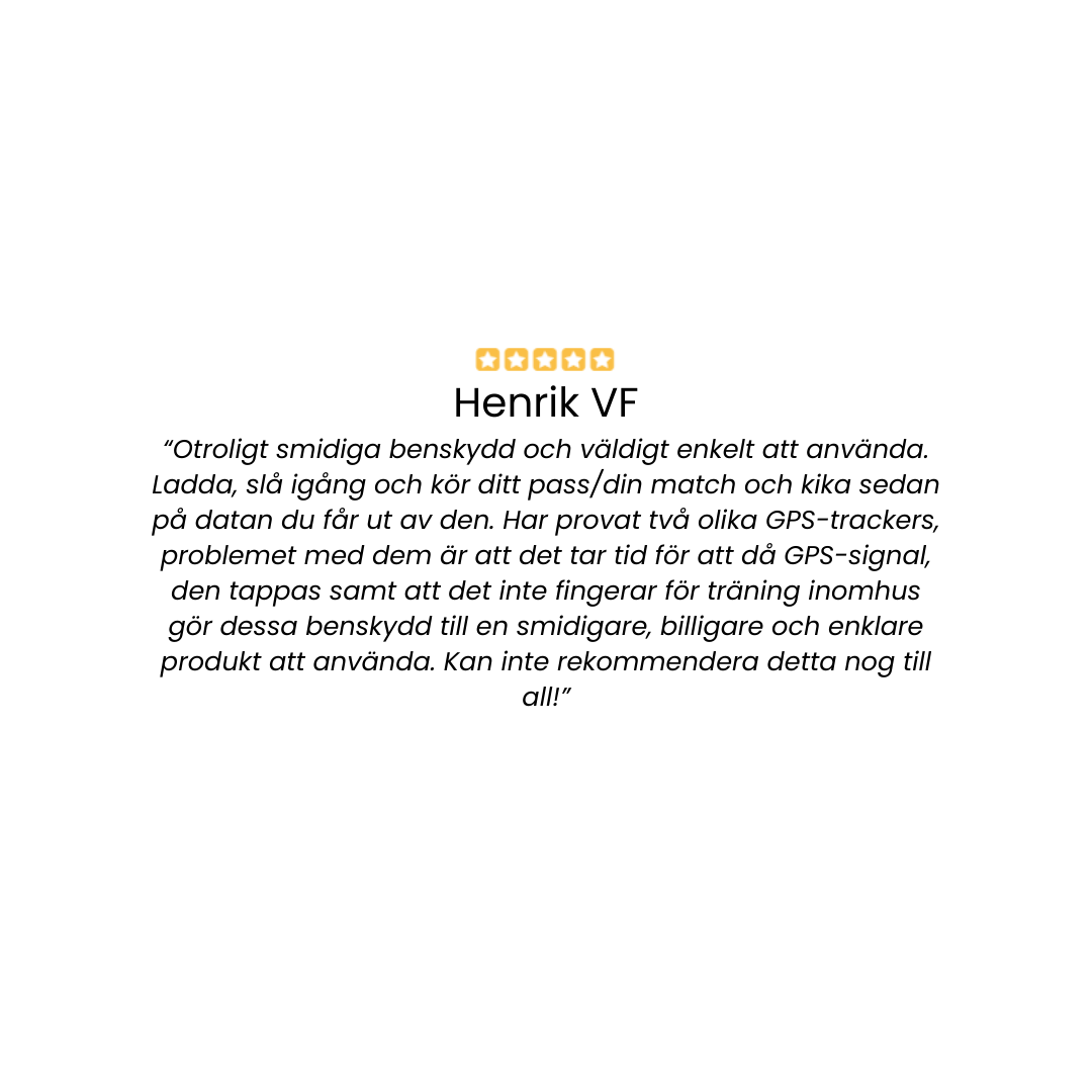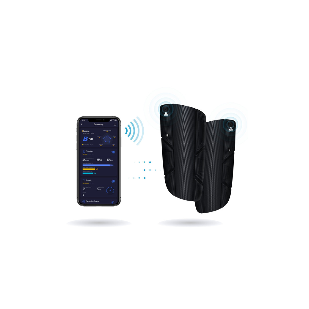 Slå bara på spelarens spårningsmoduler, sätt i benskydden och sätt på dem – som ett vanligt par benskydd. De skyddar dig från skador och stötar samtidigt som de mäter din prestation.