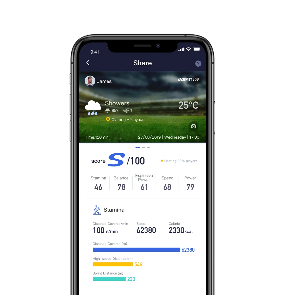 Som fotbollsspelare kan du nu mäta varje aspekt av ditt spel. Från kraften i dina skott till hur väl du använder både höger och vänster fot. Med noggranna data om ditt hårdaste skott, fotbalans och topphastighet kan du finjustera dina färdigheter som aldrig förr.